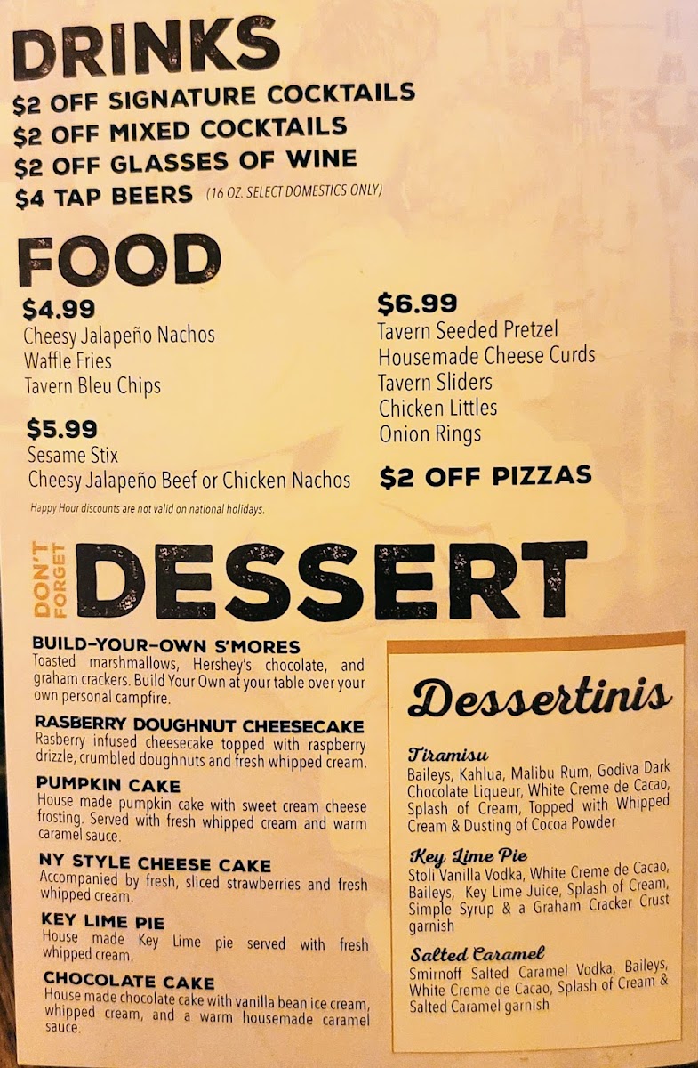 Tavern on France Menu